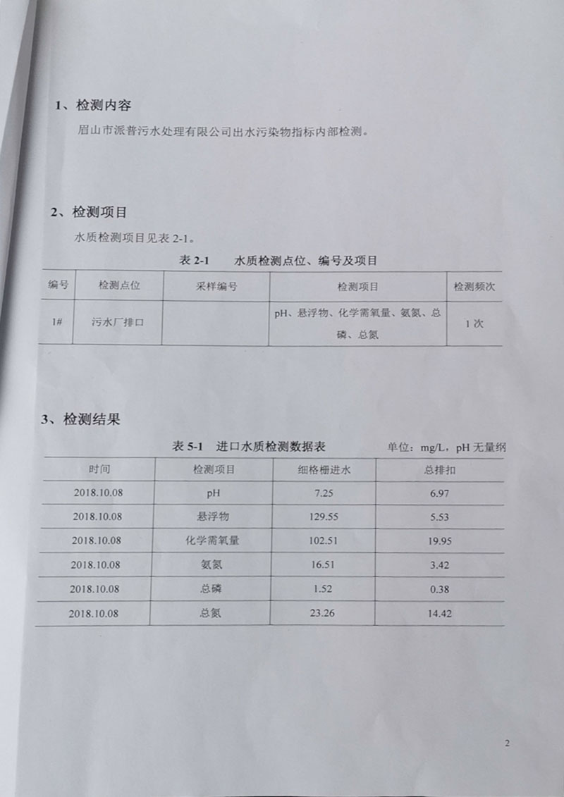 根据环保法律法规要求企业环境信息公开,现将眉山市派普污水处理有限公司污水处理厂2018年10月8日实验室自测数据公示如下: