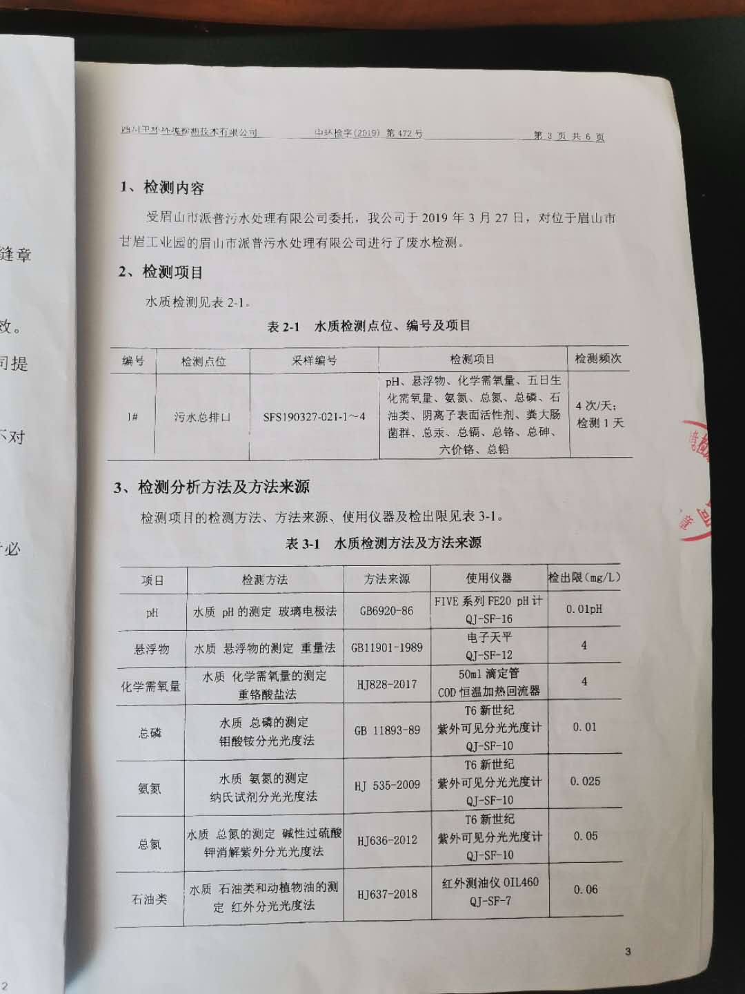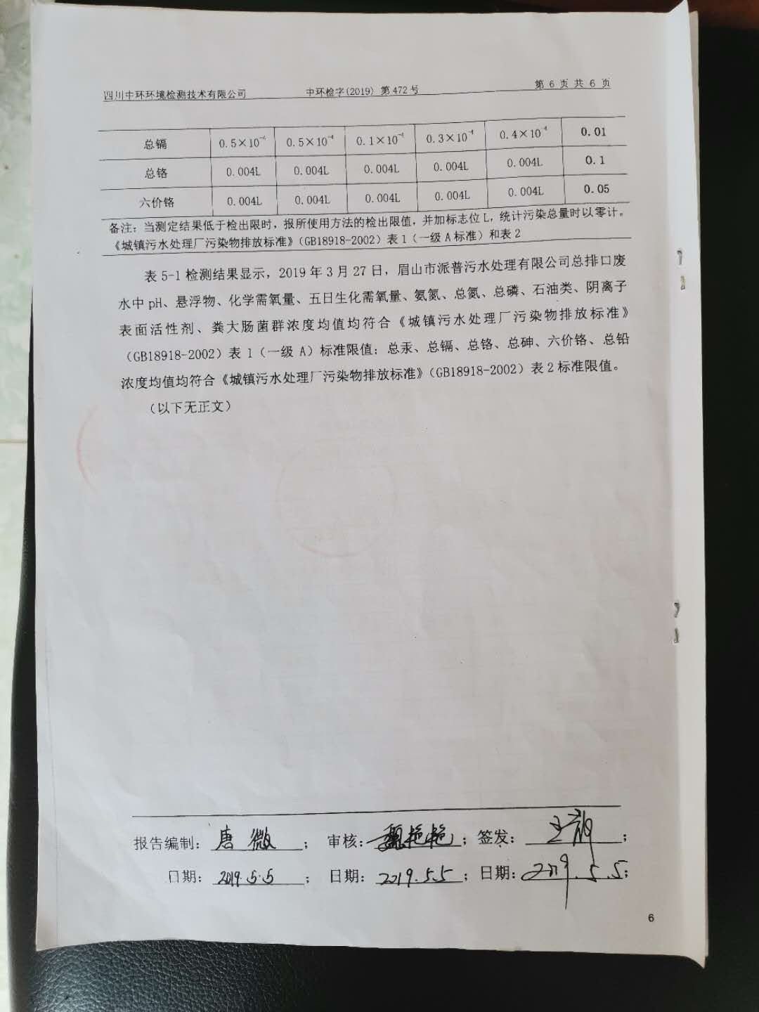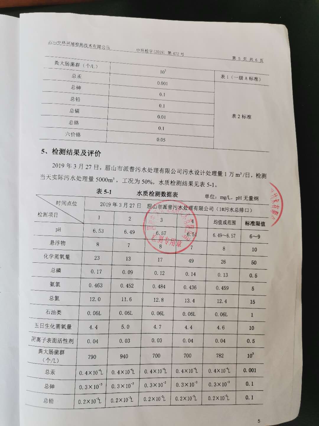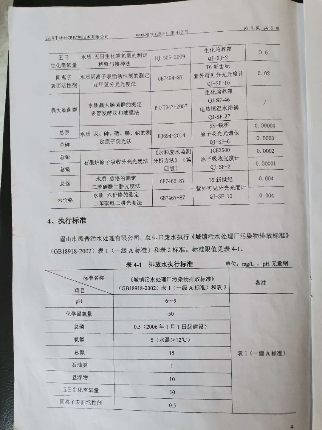 根据环保法律法规要求企业环境信息公开,现将眉山市派普污水处理有限公司污水处理厂2019年3月第三方检测机构监测数据公示如下: