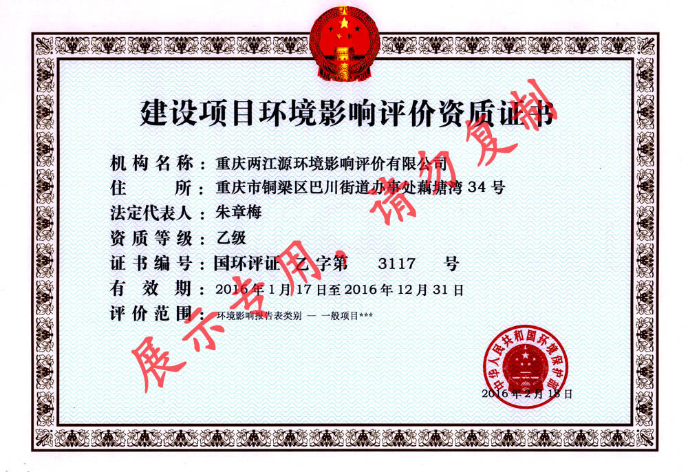 重庆两江源环境影响评价有限公司是我公司的下属公司。